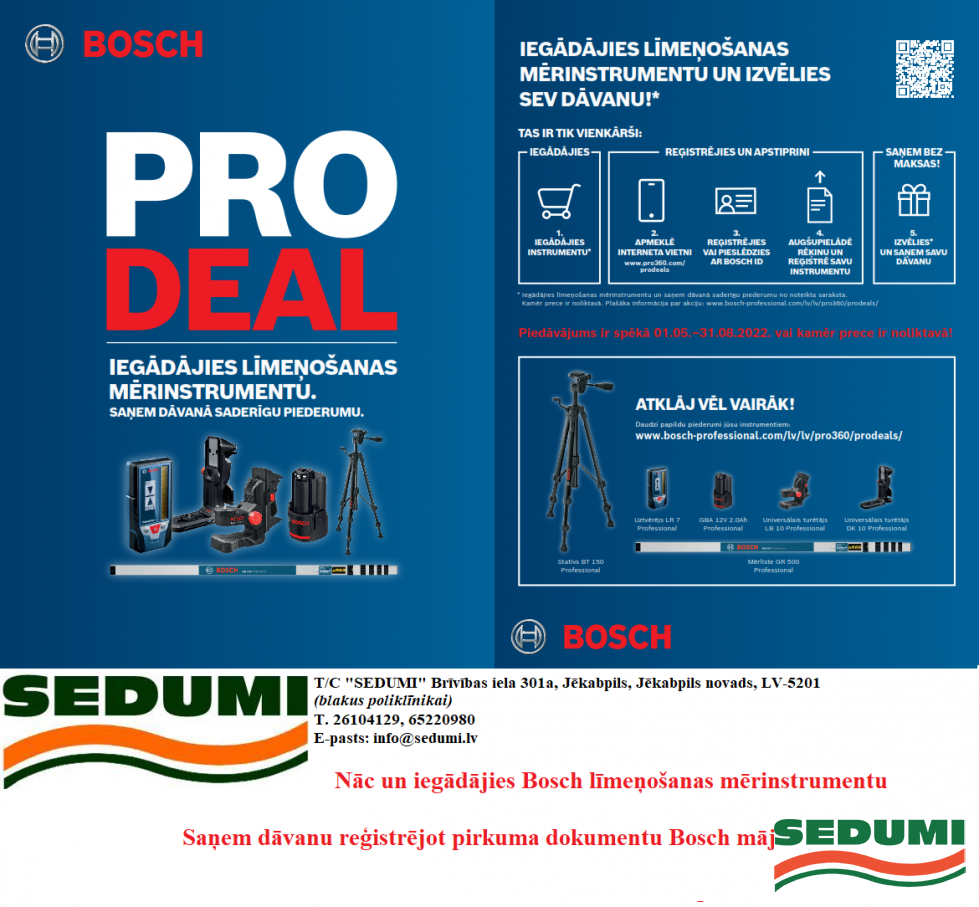Saņem dāvanu reģistrējot pirkuma dokumentu Bosch mājaslapā